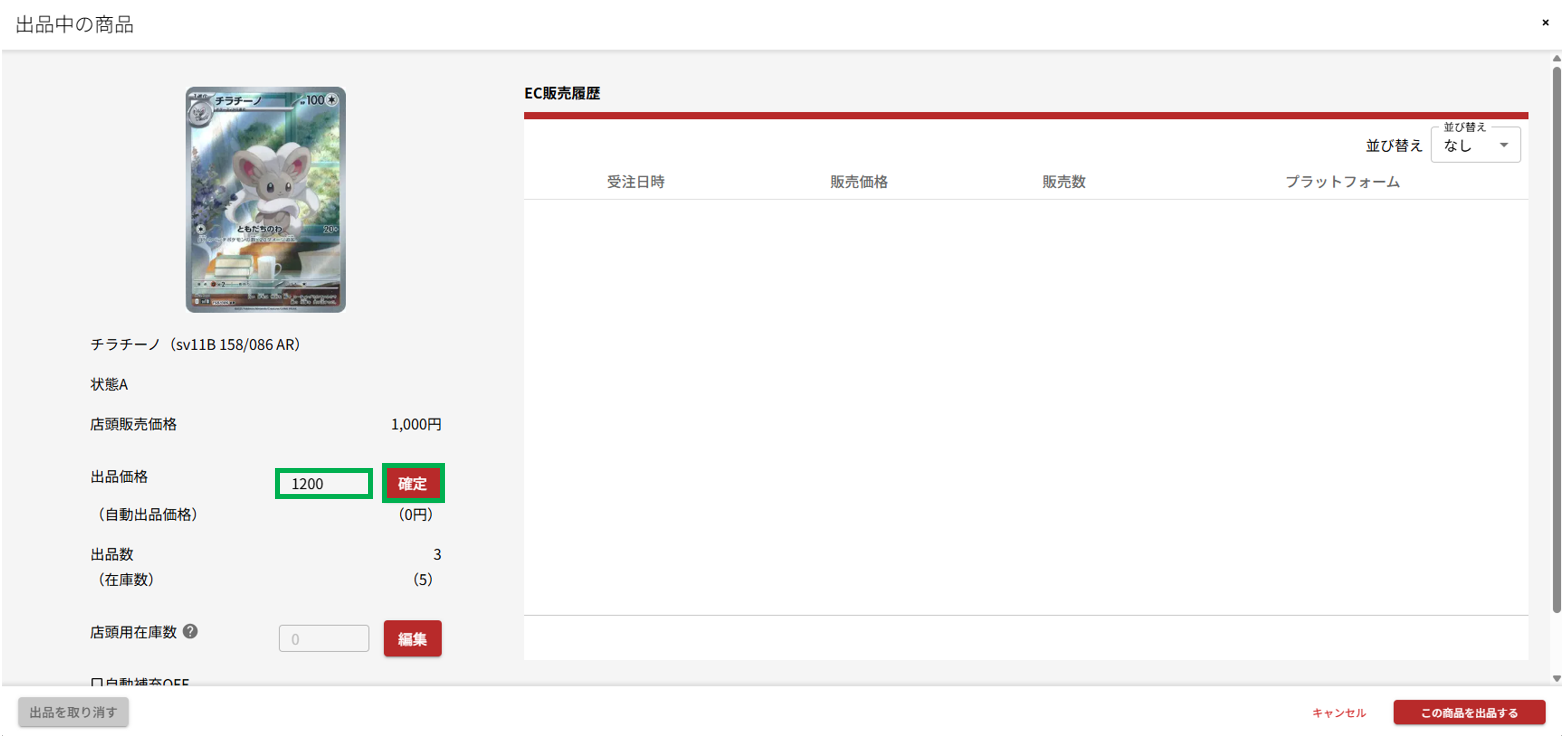 出品価格を入力し、「確定」を押します。
