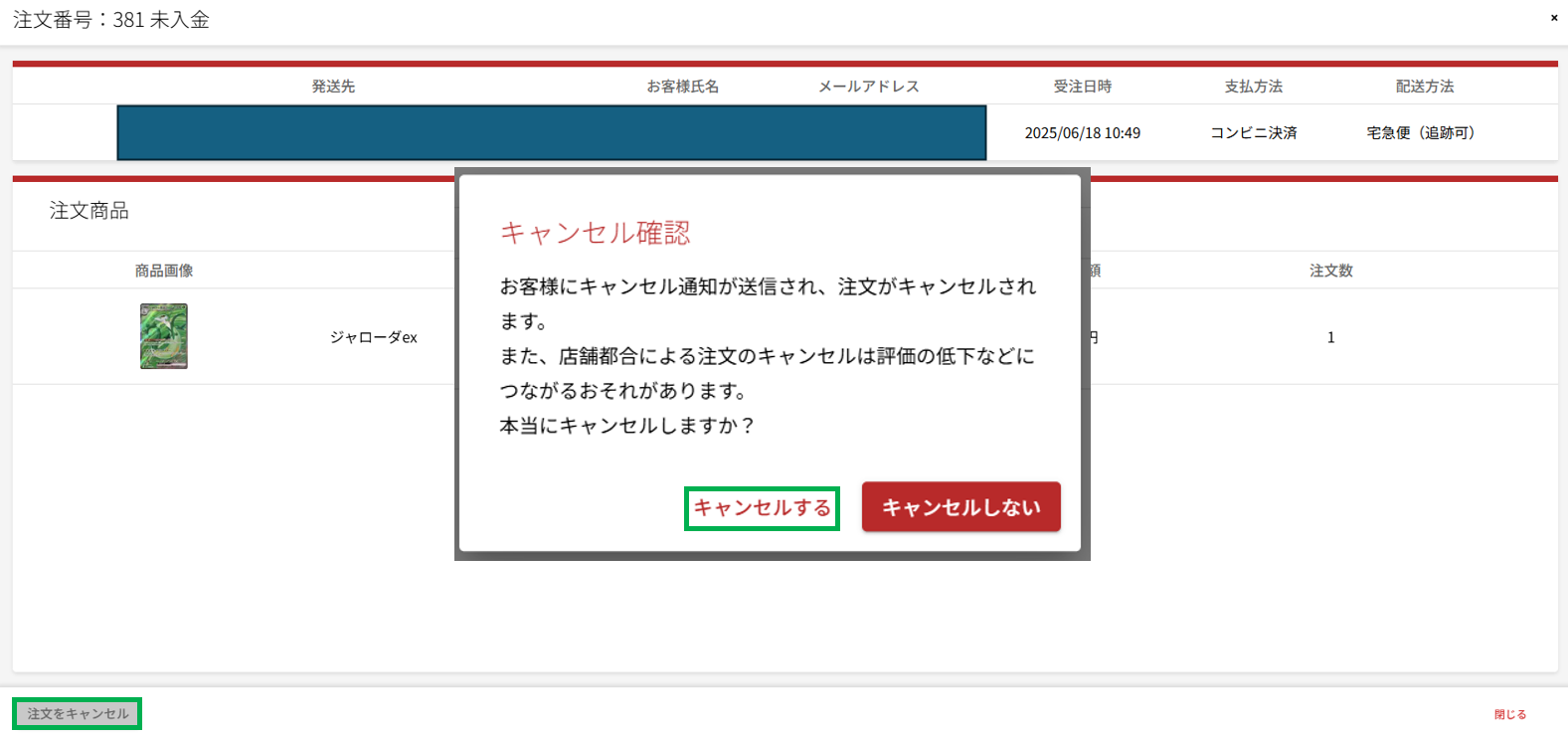 注文のキャンセル方法