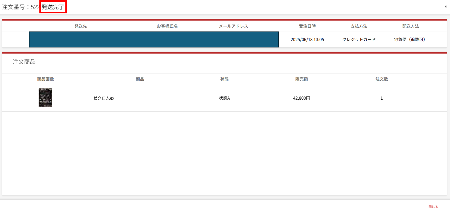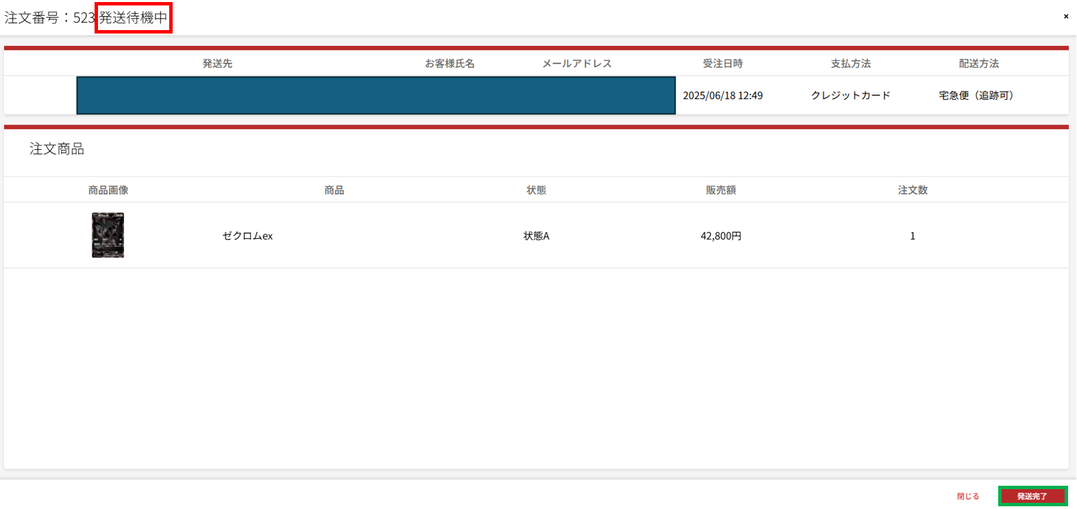 発送完了: 商品の発送が完了した注文です。”発送待機中”のものを発送完了することでこのステータスに変わります。